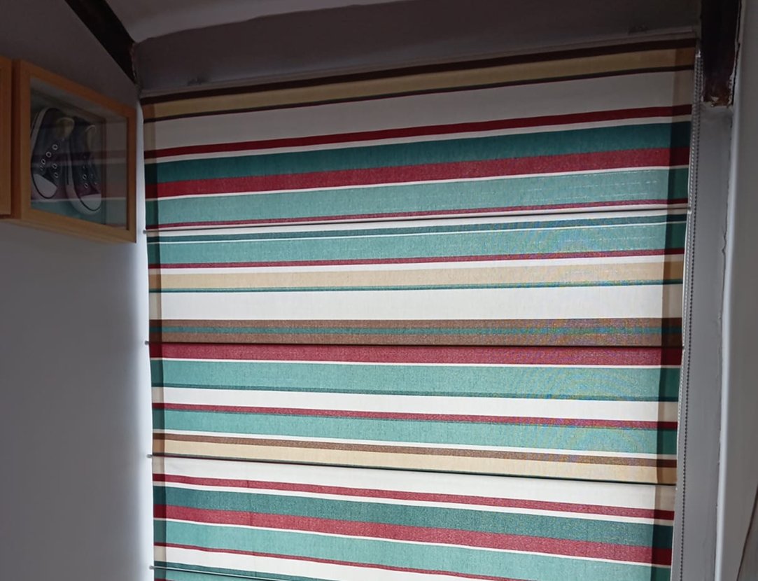Opción decorativa y sofisticada con pliegues horizontales que crean un efecto limpio y ordenado.