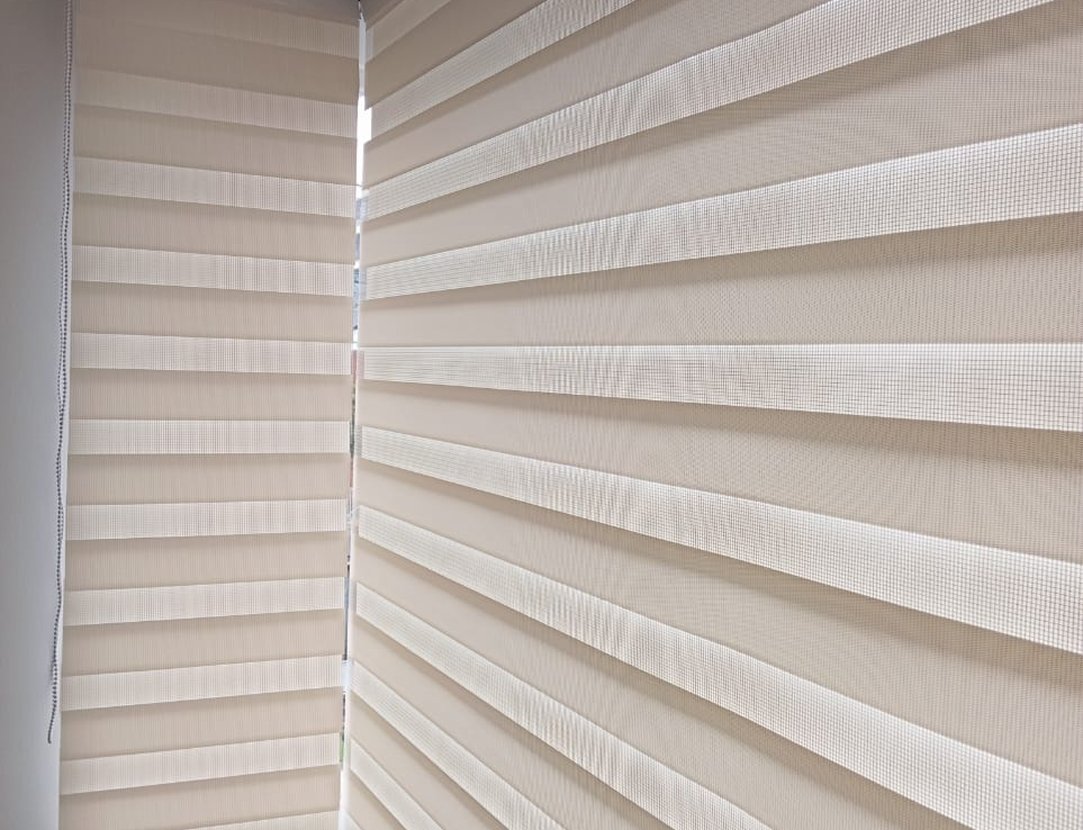 La cortina Sheer Elegance combina elegancia y funcionalidad en un solo sistema. Su diseño de franjas translúcidas y opacas permite regular la entrada de luz de manera gradual, brindando privacidad sin perder luminosidad natural.